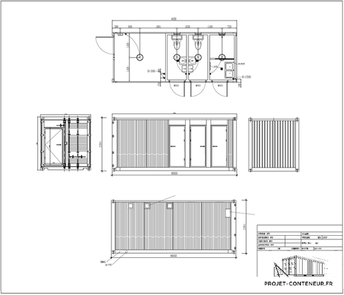 Conteneur 20 pieds maritime mix sanitaire et stockage.