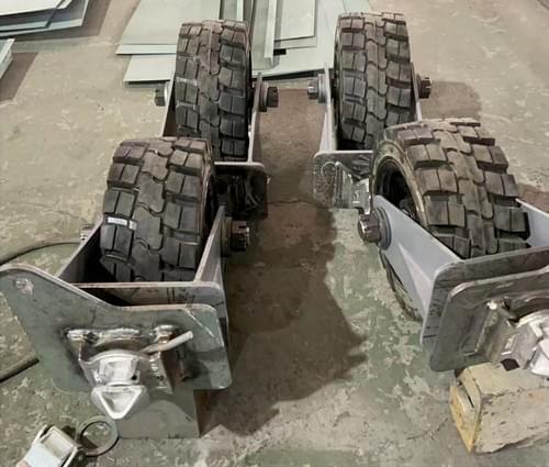 Ensemble de roues de traction type 4x4 spécialement conçu pour la manutention et le déplacement de conteneurs industriels, bennes ou caissons lourds.