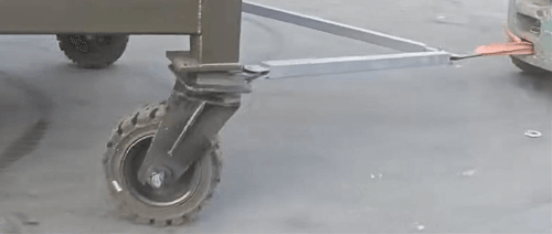 Roues et triangle de traction pour conteneur.